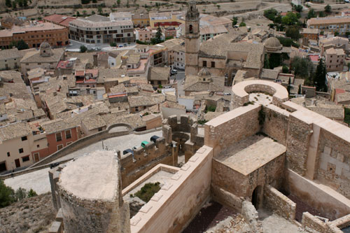 Blick vom Burgturm auf die doppelte Befestigung und Biar
