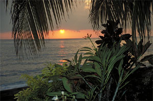 Den kleinen, lauschig unter einer Palme gelegenen Tisch erklären wir spontan zu unserem Stammplatz. Als wir dort gemütlich zurückgelehnt nett dekorierte Drinks zu uns nehmen, entdecken wir im Battwerk über unseren Köpfen mehrere dünne giftgrüne Schlangen. Sie strecken sich anmutig und recht flink von einem Palmwedel zum nächsten. Wir schnappen unsere Gläser und flüchten an den übernächsten Tisch. Die Auskunft auf unsere Fragen bezüglich dieser Reptilien ist ausführlicher als die "Donīt know"s in Lovina: "Hier hat noch nie irgend jemand eine Schlange gesehen!". Aha. Ausgesehen haben sie wie Bambusottern(die wir aus dem Discovery Channel kennen), und unter diesen Baum setzen wir uns jedenfalls nicht mehr.