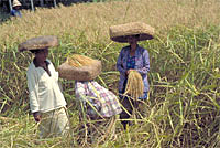 Gerüstet mit unserer Wanderkarte, der Rückseite des bereits erprobten Ubud-Stadtplans, brechen wir auf. Den Ausstieg aus dem Ort nach Penestanan finden wir noch, ebenso die Reisfelder. Zwei Brücken und Flüsse haben wir überquert, eine dritte Brücke, die - wie beschrieben - ganz wichtig ist, gibt es weit und breit nicht. Ein paar Reisbauern, die wir nach Fluss und Tal fragen, weisen über den nächsten Hügel. Eine Stunde später treffen wir wieder auf die uns bereits bekannte zweite Brücke. Wir schlagen uns mutig in ein Wäldchen - wenigstens können wir da eine Zeit lang im Schatten gehen. Es ist mittlerweile Nachmittag, unsere Füße