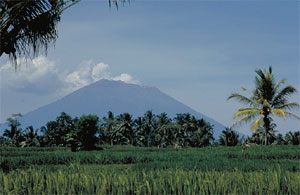 Ab zwölf Dollar pro Tag - um einiges billiger als Bungee-Jumping oder ähnliche Nervenkitzel-Adventures - wird das nicht weniger aufregende Abenteuer "Selbst fahren auf Bali" angeboten. Wir wagen es. Im dichten Gewimmel von Menschen, Fahrrädern, Fuhrwerken, Bussen und Bemos ruckeln wir ganz behutsam durch Ubud. Die Landstraßen erscheinen uns heute wesentlich schmaler als sonst vom Bus aus, obwohl wir mit einem Zwerg-Jeep unterwegs sind. Unser Ziel, Mount Agung und Besaki-Tempel, versteckt sich hinter einer bedrohlich schwarzen Wolkenwand - sieht ganz nach heftigem Regen aus. Dumm, dass wir unseren neuen Schirm nicht dabei haben. Aber die "Mutter aller Tempel", wie sich