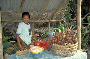 Beim Kauf der zwingenden Artikel bleibt es natürlich nicht. Schlendert man erst an den vielen hübschen und preiswerten Dingen vorbei, braucht man plötzlich Mitbringsel, Hemden, T-Shirts oder einen Sack unbekanntes Obst wie etwa Schlangenfrüchte. Sie schmecken köstlich und erfrischend. Eine Reisetasche müssen wir ebenfalls kaufen, um den ganzen Neuerwerb nach Hause transportieren zu können. Außerdem sind mittlerweile die Schwänze all unserer Holzwarane von Komodo abgebrochen. Hans will seinem Vater ein handgeschnitztes Schachspiel schenken. Er lässt sich von einem Verkäufer das Objekt seiner Wahl näher vorführen. Beim Öffnen der Schatulle sausen etliche Schaben übers Spielfeld und hüpfen zu Boden. Der Verkäufer und seine Familie kichern, und uns gelingt es, den Preis erheblich zu drücken.