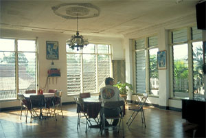 Wenn auch reichlich heruntergekommen und wohl Überbleibsel aus holländischen Kolonialherrschaftszeiten: Das Parewa-Hotel (vom Reiseführer empfohlen und eines der wenigen überhaupt) erscheint uns als Hort des Friedens. Anstelle des angebotenen kleinen Zimmers leisten wir uns eine so genannte VIP-Suite. Sie sieht genau so aus wie das besichtigte kleine Zimmer, verfügt aber über einen Wandteppich und TV. Uns ist alles recht: Hauptsache, wir haben Zugriff auf sanitäre Anlagen. Als einzige Gäste bekommen wir sogar noch etwas zu essen - im Speisesaal mit bröseliger Stuckdecke, Plastiktischen und -stühlen im schicken Holzdesign. Besonders dekorativer Blickfang: das zwischen zwei Fenstern angebrachte Waschbecken.