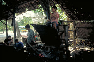 ßend besuchen. Der prallen Sonne ausgesetzt und auf staubigem, nackten Boden drängen sich die winzigen Hütten auf einem wohl schon vor langem kahl geschlagenen hügeligen Gelände. Kleine Kinder