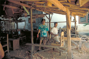 Nächste Station: eine Schreinerei. Hier werden wir von den Besitzern persönlich unter die Fittiche genommen. Stolz zeigen sie uns Tische und Stühle, hauen mit schweren Hämmern gegen Türen und auf Sitzflächen, damit wir sehen können, wie solide hier gearbeitet wird. Zum Schluss stellen sie sich noch vor ihrer Werkstatt für ein Foto in Pose.