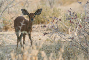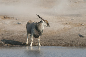 Klein-Okevi - mit einem einsam trinkenden Kudu - liegt malerisch inmitten dichter Vegetation. Neben Chudob mit seiner Fülle an Leben nimmt es sich eher bescheiden aus.Als sich das Kudu in die Büsche schlägt, verlassen auch wir den Ort.
