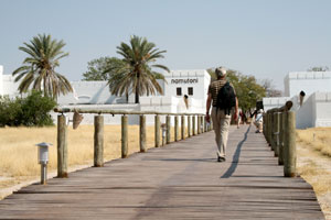 In der schicken Mushara Outpost, etwa 20 Kilometer östlich des Etoschaparks und Namutoni-Gates, stehen uns drei richtig herrliche afrikanische Nächte mitten im Busch und in - recht luxuiös ausgestatteten - Safarizelten bevor. Eine ideale Basisstation für die Erkundung des Nationalparks. Heidi war zunächst enttäuscht, uns nicht in einem der drei Camps drinnen unterbringen zu können - sie waren alle ausgebucht. "Ausgebucht" bedeutet in diesem Fall allerdings, dass die großen Reiseveranstalter aus aller Welt pauschal und Jahre im Voraus die meisten Plätze belegen - weg gehen sie