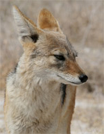 anmutender Ort, trocken, mit niedriger Vegetation, bietet aber riesigen Tierherden genügend Lebensraum und Nahrung. Wir haben gehört, dass die Tiere hier auch etwas scheuer sind. Der kleine Schakal gleich hinterm Fort jedenfalls nicht. Als wir anhalten, kommt er fast bis an die Autotür. Wahrscheinlich kriegt er des Öfteren ein paar Leckereien vom Namutoni-Frühstücksbuffet ab.