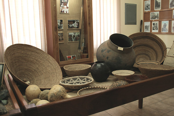 Die Beine vertreten wir uns im Anschluss an die Völlerei im Museum um die Ecke, das einen kompakten Exponat-Mix aus hiesiger Bergbau-, Minen- und kultureller Vergangenheit bietet: von alten Häuptlingsfotos, Jagdwaffen, Schmuck, Flechtwaren über Kanonen aus dem Ersten Weltkrieg, diversen Fördergerätschaften und -maschinen bis hin zu wunderschönen Mineralien. Der Kiosk am Ausgang bietet davon einige zum Verkauf an - wir nehmen einen der putzigen Autoaufkleber mit einem Warzenschwein mit.