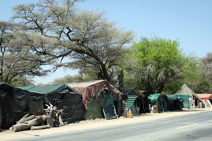 Gelegenheit dazu haben wir in Otjiwarongo. "No Problem", meint unser Tankwart, putzt die Scheibe, stopft den Gummi in die Schiene und klebt einen durchsichtigen Paketklebestreifen darüber und am gesamten Rahmen fest. Eine Bezahlung lehnt unser netter Helfer strikt ab, Trinkgeld nimmt er aber freudestrahlend entgegen. Den verlockenden