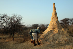 festzustellen ist, ob noch Termiten drin sind oder der Hügel verlassen ist. Sind Löcher in der Wand, haben ihn Schlangen zum Schutz und angenehmen Temperierung ihrer Eier besetzt. Im Zweifelsfall hilft nur, einen Arm hineinstecken, rät unser Führer. Ganz bestimmt testen wir das mal aus...