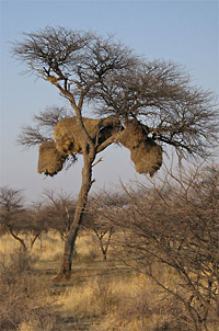 Webervogel-Nester, die einen Baum überziehen, bis sie ihn ersticken können, und einem Termitenhügel, wo wir eine Kurzanleitung erhalten, wie