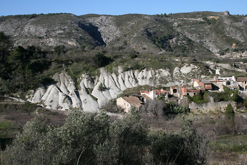 Blick auf Llombai am erodierten Hang