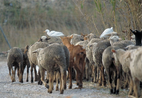 Gemeinsam unterwegs: Schafe und Kuhreiher