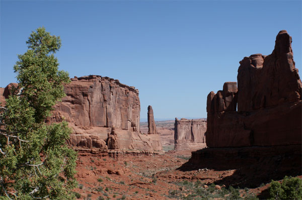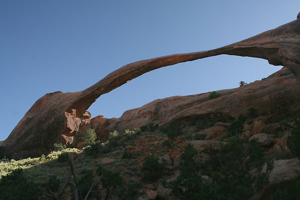 Wir wandern zu kleinen, größeren und doppelten "Windows", stehen staunend unter wuchtigen und zierlichen "Arches" und im Devil's Garden vorm eindrucksvollen Landscape Arch mit einer Spannweite von fast 90 Metern. Man kann ihn heute nur aus respektvoller Entfernung betrachten - in den Neunzigerjahren brach ein 15-Tonnen-Brocken aus seiner Flanke und begrub eine Touristengruppe unter sich.