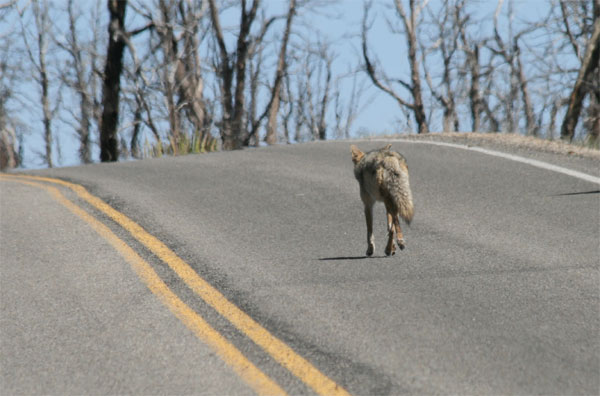 Am nächsten Morgen geht's nach einem Kaffee-Muffin-Frühstück hinauf auf die Mesas und zu den berühmten Pueblos der Anasazi. Mitten auf der Straße trottet uns ein einsamer Koyote entgegen. Linda tritt in die Bremsen, wendet bei durchgehendem Streifen und nimmt in Schritttempo die Verfolgung auf. Das Tier ist nicht sonderlich scheu, biegt in einen Feldweg ein, beäugt uns nur ab und an aus ein paar Metern Entfernung und lässt sich dann ganz cool unter einem Baum nieder um sich ausgiebig zu kratzen.