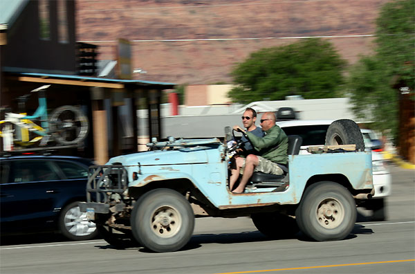 Dass Moab - Ausgangspunkt für den Besuch des Arches National Park, Canyonlands, Colorado-Bootsfahrt und vieles mehr - heute wohl nicht mehr der nette, kleine, angenehm belebte Ort mitten in der Einsamkeit von vor 25 Jahren sein würde, hat Linda bereits bei der Reiseplanung geahnt. Zwischen Events wie Autosalons, Oldtimer-Rallyes und Slickrock-Championships konnten wir mit Ach und Krach noch ein Zimmer für vier Nächte übers Wochenende im allseits hoch gelobten Adventure Inn ergattern ("especially the fluffy green towells..." haben es etwa einer Lonely-Planet-Autorin angetan, die darüber hinaus den "great place to stay" und im besonderen die hauseigene "lovely picknick area" in den höchsten Tönen beschwärmt).