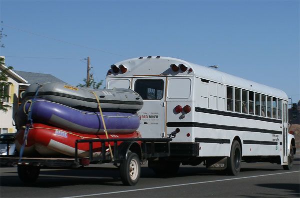 Die Picknick Area ignorierend lassen wir den Abend ausklingen mit einer letzten Zigarette auf dem Bänkchen vor der Rezeption, jetzt stören wir niemanden mehr. Die Durchgangsstraße ist nun auch etwas ruhiger geworden, Monstertrucks, Hummer, Jeeps, Schlauchboote, Kanus und Bikes sind von der Bildfläche verschwunden, auch harte Männer brauchen Schlaf. Linda fällt die glimmende Kippe aus der Hand und auf die Holzdiele, genau in eine Ritze, rollt unter die Bretter, sodass sie nicht mehr rauszufischen ist und dort vermutlich weiterglimmt. Wir können nur hoffen, dass das Büro morgen noch steht...
