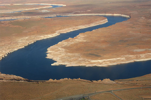 Flug über den Lake Powell - Wasserarm zur Antelope Point Marina