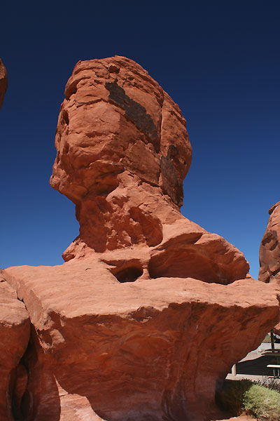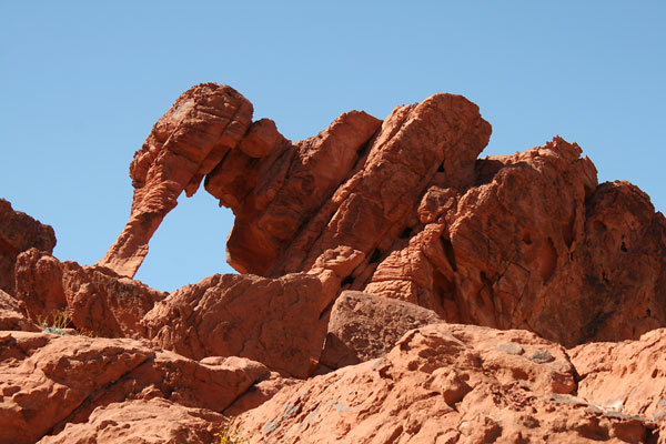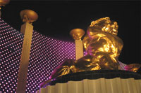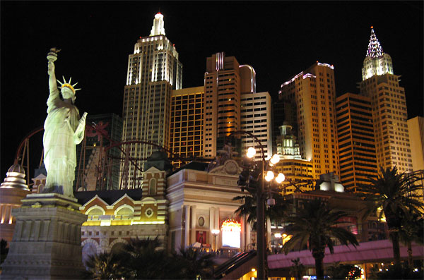 Valley of Fire zu fahren. Die aparte Landschaft aus leuchtend rotem Sandstein könnte von Dali geschaffen worden sein: Riesige surrealistische Skulpturen flankieren die Straße - hier sind's die "Seven Sisters" -, Menschen- und Tierköpfe ragen gen Himmel, wie Bienenkörbe geformte Felsen scheinen zu zerfließen, ein monströses ameisenähnliches Wesen erklimmt einen Felsen. Jammerschade, sich hier nur auf einen Abstecher beschränken zu müssen, aber unsere Reise nähert sich erbarmungslos dem Ende und unserem letzten Abend - in Las Vegas.