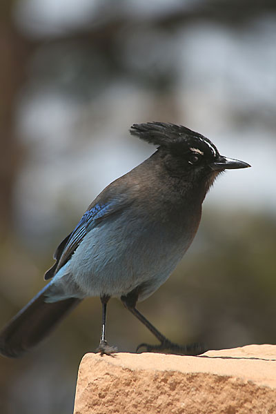 es Chipmunks - Streifenhörnchen. Ein hübscher Diademhäher lauert