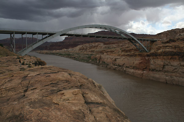 uns herum in ein nahezu unwirkliches Licht. Beim Überqueren des Colorado wird es fast gespenstisch - der Himmel ist so schwarz, dass Konturen und Schatten kaum zu erkennen sind.