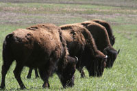 Ein paar Büffel bekommen wir wenig später auch zu sehen - keine wilden natürlich, aber die können wir wenigstens in aller Ruhe betrachten. Nach zwei Stunden Fahrt - bergab und in zunehmend milderes Klima - beginnen wir ein Quartier zu suchen. Orte auf der Karte sind in natura keine, an der Straße ausgeschilderte Lodges außer Betrieb. Kommt mal ein Ort, gibt's nichts zu übernachten. Erst in Grand Carmel Junction lockt ein Western Country Inn mit "Vacancy". Das Zimmer