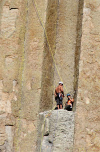 hier herumliegen und seinen Sockel bilden. Wie Ameisen kommen wir uns beim Durchlaufen vor. Eine Begegnung der Dritten Art - wieder befinden wir uns inmitten einer berühmen Filmkulisse - ist uns nicht vergönnt. Aliens treiben sich wohl hier herum, allerdings in Pflanzenform, und wie heutzutage überall, werden sie auch am Devils's Tower erbarmungslos im Rahmen von Naturschutzmaßnahmen aufgespürt und so gründlich wie möglich ausgerottet.