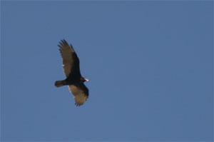 Dafür haben sie offenbar einen Riesenspaß, juchzen und lachen, während sie in schwindelerregenden Höhen umherkrallen. Ist auch für uns und viele andere Zuschauer sehr unterhaltsam von hier unten aus - und zudem sehr aufschlussreich, was die wahren Dimensionen dieses Bergs anbelangt. Unbestrittene Großmeister der Lüfte sind allerdings die eleganten Truthahngeier, die die Aufwinde entlang der Steilwände nutzen und um die Bergspitze kreisen, ohne einen Flügel zu bewegen.