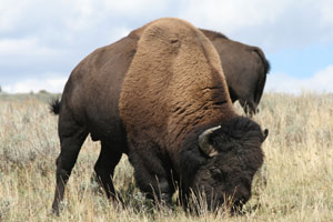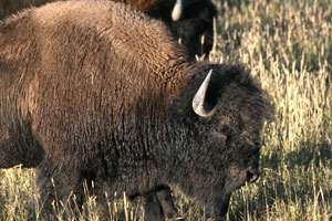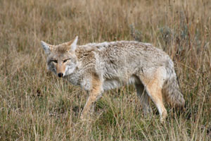 Pünktlich nach Passieren der Parkgrenze setzt heftiger Schneefall ein, unsere Fassungslosigkeit versuchen wir mit Reflexionen über die launige Elch-Sichtung zu verdrängen. Lake Yellowstone präsentiert sich schwarz und sturmgepeitscht. Wenigstens gießt es hier nur noch. Eine größere Bisonherde im Hayden Valley hält uns etwas auf und von unseren Vorsätzen ab; egal, wir liegen ganz gut in der Zeit, in Mammoth Hot Springs sollen wir ohnehin erst nach 16:30 Uhr einchecken. Ein Stückchen weiter reihen wir uns in einen Stau am Straßenrand ein - recht weit entfernt schnürt ein wolfsähnliches, graues Tier durchs hohe Gras. Wir sind ganz aus dem Häuschen. Dass es letztlich ein Koyote ist, trübt unsere Freude nicht, die laufen einem