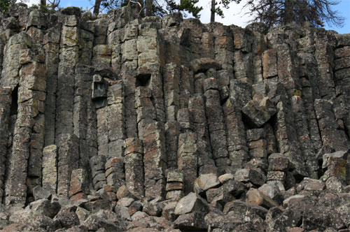 Basaltsäulen des Sheepeater Cliff, südlich von Mammoth