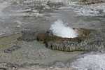Gelände zu erschweren. Die farbenfrohe Landschaft des Firehole Lake präsentiert uns jetzt eher ihre geheimnisvolle Seite - größtenteils eingehüllt in Nebel. Eigentlich auch sehr hübsch. Dennoch halten wir unsere Runde hier kurz und besuchen noch einmal den White Dome Geyser, mittlerweile ist er unbelagert und qualmfrei.
