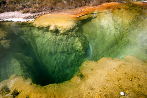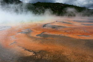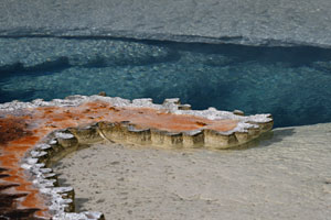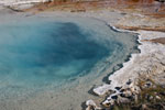 wieder so richtig bunt, es heißt nur Geduld haben. Wo auch immer eine kräftige Windbö Dampf wegbläst, werden tiefblaue Pools und leuchtend grüne, rote und den Himmel wiederspiegelnde filigrane Terrassen diverser Quellabläufe enthüllt. Überall glitzert und plätschert es - ein fantastisches Farbspektakel, an dem man sich gar nicht satt sehen kann. Schicke Pools gibt's natürlich auch, etwa den Opal Pool mit seinem rostroten Rand, der sich sogar völlig nebelfrei präsentiert oder den gigantischen Excelsior Geyser, der es vorzieht, sich hinter penetrant festsitzenden Dampfwolken zu verstecken. Hier kann man lange warten, um einen Blick auf sein kristallklares und tiefblaues Wasser werfen zu können.