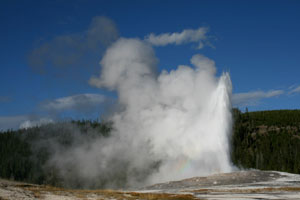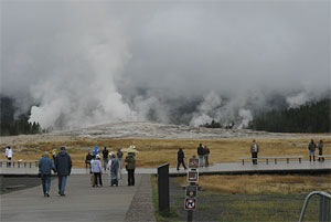 Old-Faithful-Eruption gescheucht und nach dem Ereignis gleich wieder eingesammelt und zum nächsten Highlight