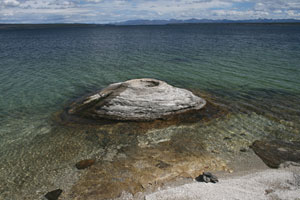 Die eigentlichen Stars des Westthumb Basin sind, wie wir finden, die Geysire im See: Fishing Cone, ein kleiner Bilderbuchkegel im Wasser, Lakeshore Geyser mit Pool und Big Cone, einen überdimensionalen Fladen am Ufer.