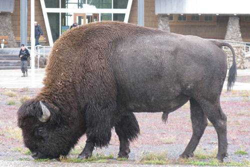 Old Faithful Lodge - Bison vor dem Visitor Center